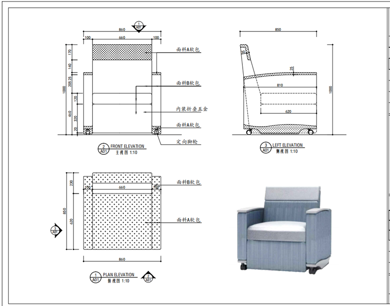 根据现场复尺情况确定最终家具配置方案之后,就可以对接厂家,着手医疗家具定制了。这里要注意的是,务必要求厂家按方案清单对家具进行图纸深化、打样,然后再进行生产。这样才能确保家具的材质、样式、色彩,以及使用体验达到理想效果。