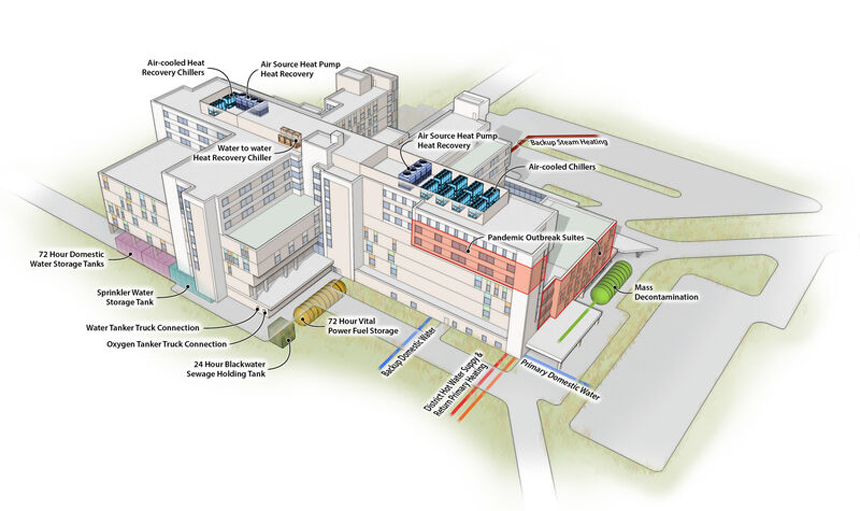这栋8层大楼涵盖了急诊科、医学影像、新生儿/儿科重症监护、住院病房,以及血液学、肿瘤学和手术室,以及一个高危分娩室。